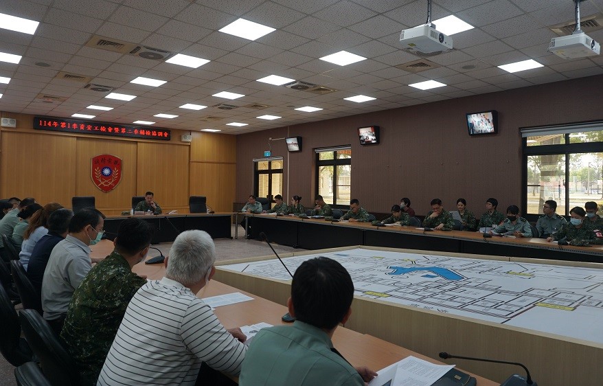 民國114年4月8日於黃埔廳辦理「本校114第一季通資安全工作檢討暨第二季資安督檢協調會」,由教育長黃孫德昌上校主持,會議主要檢討各項資安工作暨說明第二季資安督檢重點,與會人員計有資圖中心主任、副主任、各承參、教務處、學務處、總務處、主計室、大學部(含各系)、語文中心、通識中心、醫務所、軍規組、體育組、學指部、勤務連等單位資安長(官)。