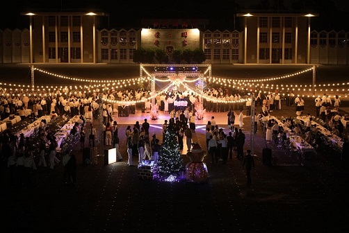 本校今年校際交流晚會以《仙境森舞》為主題,結合美式野餐風格,將平日嚴肅陽剛的司令臺布置成充滿青春、熱情的舞會場地,讓蒞校來賓與滿天星空共舞,並藉此展現陸官生交際禮儀。